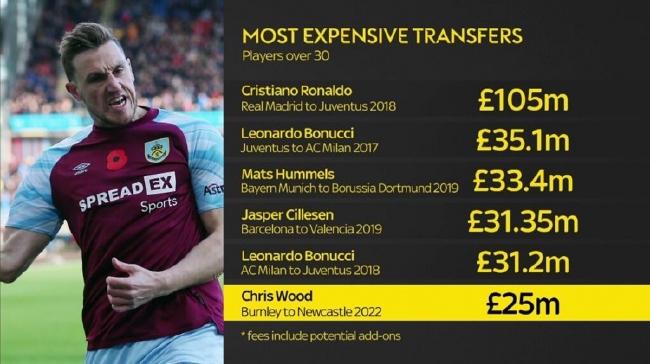 纽卡斯尔以2500万英镑签下伯恩利30岁的前锋克里斯-伍德。英国媒体认为这是一笔疯狂的交易,毕竟伍德在前半赛季出场了21次,只打入了3粒进球。
