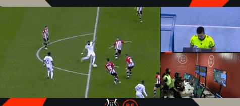 比赛第52分钟,阿尔瓦雷斯禁区内手球犯规,本泽马射入点球,帮助皇马2比0锁定胜局。