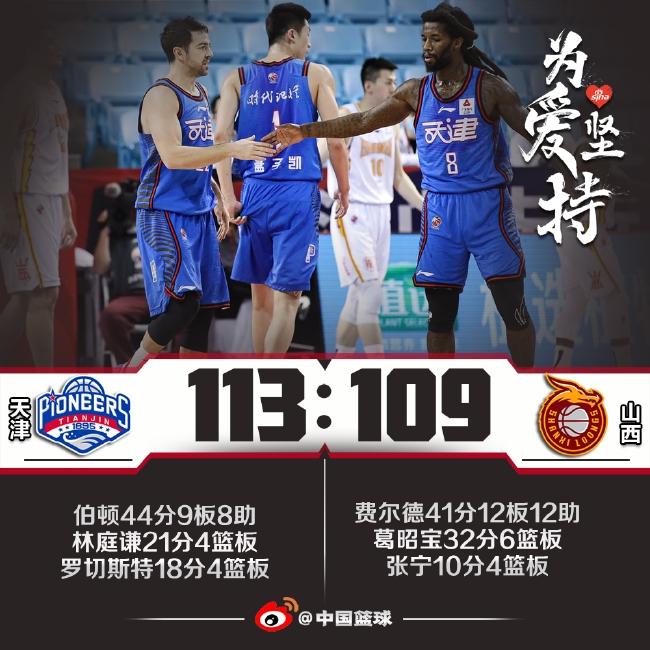 伯顿44+9+8费尔德空砍41+12+12 天津险胜山西