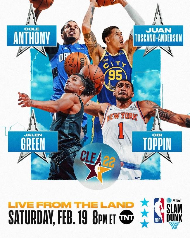 北京时间2月9日,NBA官方宣布了今年克利夫兰全明赛扣篮大赛的参赛名单,火箭榜眼秀杰伦-格林、魔术球员科尔-安东尼、勇士球员胡安-托斯卡诺-安德森和尼克斯球员奥比-托平。