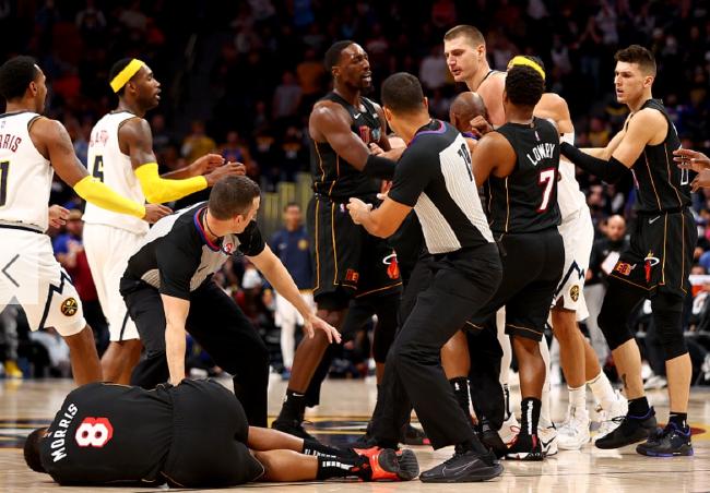在去年11月的那场比赛中,马基夫-莫里斯冲撞约基奇,后者为报复将大莫里斯撞倒在地而受伤,双方立刻爆发冲突。当时,巴特勒曾在赛场上怒喷一名掘金助教,还在赛后带领队友去掘金更衣室堵门,被保安拦下。