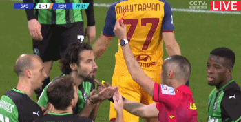 第77分钟,萨索洛队长费拉里大禁区前绊倒亚伯拉罕,领到第二张黄牌染红离场。