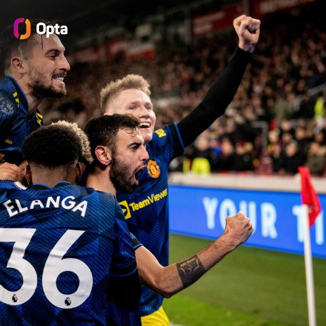 北京时间周四凌晨,在英超一场补赛中,曼联3比1击败布伦特福德。埃兰加打破僵局,B费助攻格林伍德和拉什福德进球。