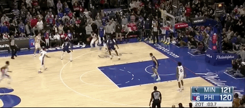 比赛进行到第二个加时的最后一攻,恩比德边线接球之后,爱德华兹一对一防守时,看到对手连续运球准备完成跳投。此时爱德华兹顺势起跳,伸直长臂完成了对恩比德的直接封盖。正是这次封盖,让森林狼队惊险从富国中心全身而退,一分优势险胜对手。
