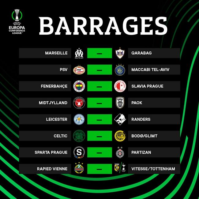 12月13日,欧协杯淘汰赛附加赛抽签结果揭晓。莱斯特城遭遇丹麦球队兰德斯。